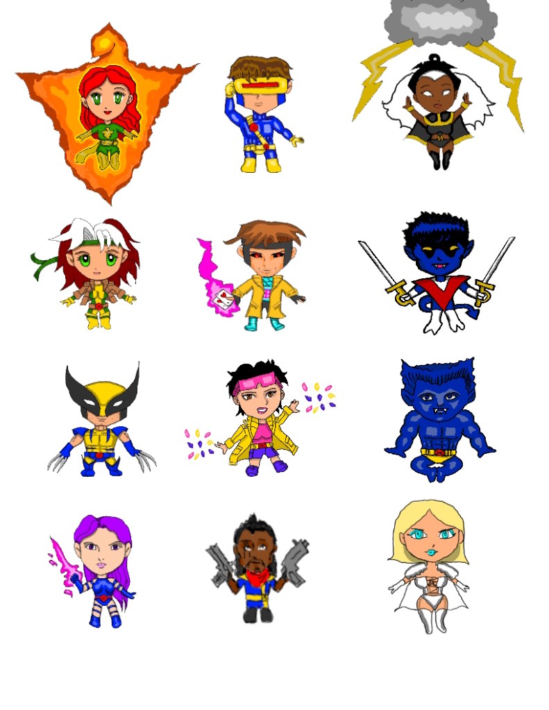I felt like my first version of the mini X-Men wasn’t complete enough, so I added a bunch more characters. I also changed Jean Grey to a cooler incarnation of the character. Okay, now that I’ve got this out of my system, I will stop drawing X-Men and will do more important things. Or at least more useful things.