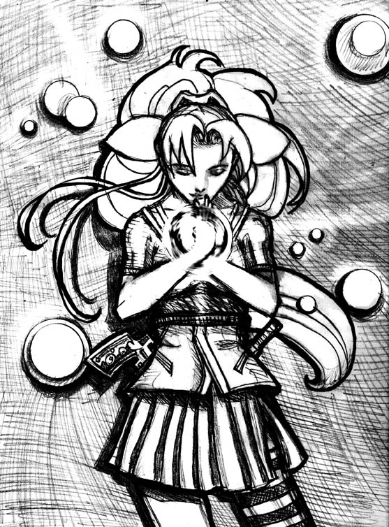 I just wanted to do a quick sketch to play with my new colored pencils, and this came out. I think she looks pretty cool:)